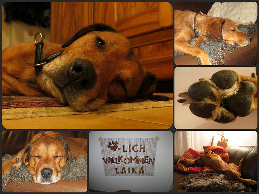 Ich bin bei ganz lieben Menschen in ein schönes grosses Haus eingezogen und sie haben mich direkt in ihre Familie aufgenommen. Anfangs redeten sie komisch...also total anders und sie haben mich immer angeschaut und "Laika" gesagt..... erst dachte ich, dass die vielleicht sehr herzlich aber doch etwas gaga sind, aber dann hab ich angefangen es zu verstehen...