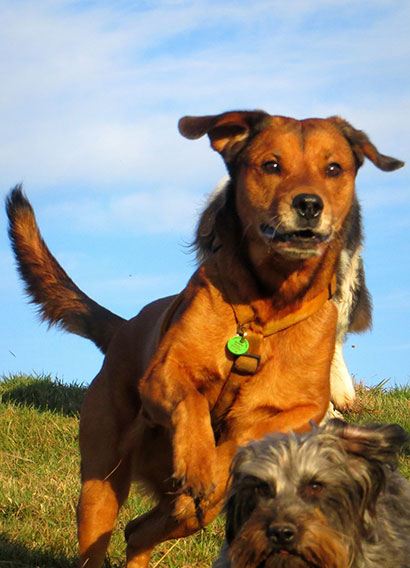 3 (!!!) ja echt...DREI andere Hunde leben hier mit mir und ich mit ihnen. Ein wildes junges Mädchen und ein ganz kleiner Mann und ein ganz grosser. Mir sind fast die Augen aus dem Kopf gefallen!