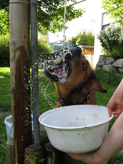 Erst fand ich das doch etwas übertrieben und die kannten sich halt auch schon so gut...aber ich hab mich dann doch ziemlich schnell mit ihnen angefreundet, denn sie sind echt super nett zu mir und so ziemlich alles macht im Rudel einfach viel mehr Spass und glaub' mir, davon gibts hier eine ganze Menge! Apropos Spass.... Uiiih, ich habe in der Küche grad meinen Napf klappern hören und da will ich lieber nichts verpassen, deswegen muss ich zumindest vorerst zum Ende kommen.