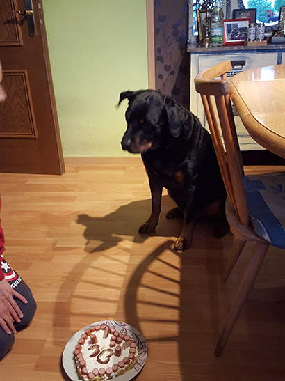 Rottweiler Caid hat seinen 10 Geburtstag gefeiert