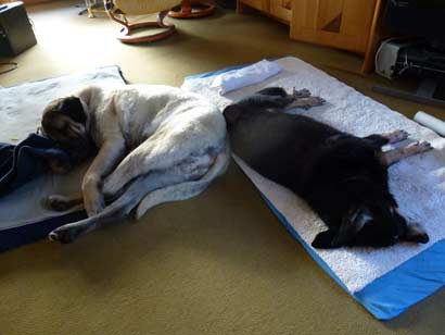Guten Tag Frau Herr, Douce geht es immer noch gut, sie ist munter und stürmisch / grobmotorig wie eh und je. Seid Oktober 2014 hat Douce jedoch einen "Spielkameraden" bekommen. Über meine Tierärztin bin ich an einen Kangal mit Namen Paule gekommen, der vom Tierheim nur noch für ein paar Monate Lebenserwartung eingestuft worden war. Er ist aus ganz schlechten Verhältnissen beschlagnahmt worden, hat sehr große Probleme mit den Hüften und den Hinterläufen, kommt ohne Schmerzmittel nicht über die Runden. Nun hat er es schon auf ein 3/4 Jahr bei uns geschafft Im Anhang sende ich Ihnen ein Bild von den beiden. Ich hoffe, die viele Arbeit für die Veranstaltung hat sich wieder gelohnt.