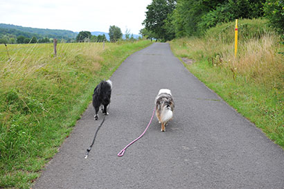 Naja, die Border Collie Dame des Hauses ist ein wenig zickig auf Ihre alten Tage, doch nicht böse zickig. Hin und wieder darf ich ganz nahe bei ihr auf dem Hof liegen, bis ihr mit ihren 17 Jahren dann aus heiterem Himmel wieder einfällt, dass das eigentlich gar nicht geht und sie mich anbellt. Ihr fragt Euch bestimmt auch wie es mit mir und Blue (ehemals Eros (9)) so klappt. Na dann verrate ich Euch mal ein Geheimnis „wir sind sehr verliebt miteinander“. Er kommt hin und wieder zu mir in mein Körbchen gekrabbelt und legt sein Köpfchen auf mich oder gibt mir ein Küsschen auf die Nase. Ich muss gestehen von mir bekommt er auch sehr oft Küsschen. Ein Glück das er seine anfängliche Unsicherheit mir gegenüber ablegen konnte. Sonst hätte ich nie erfahren was für ein toller Kerl er ist. Ja, sozusagen, genau der Freund mit dem man zusammen Würstchen stehlen kann.;-) Mit dem Fressen ist das so ne Sache, ich muss unbedingt abspecken, kann sonst nicht mit Blue draußen beim spazieren und flitzen gehen, mithalten. Und mithalten muss ich, denn wir sind sehr oft draußen. Wir machen sehr gerne ausgiebige Spaziergänge… . das mag ich sehr.