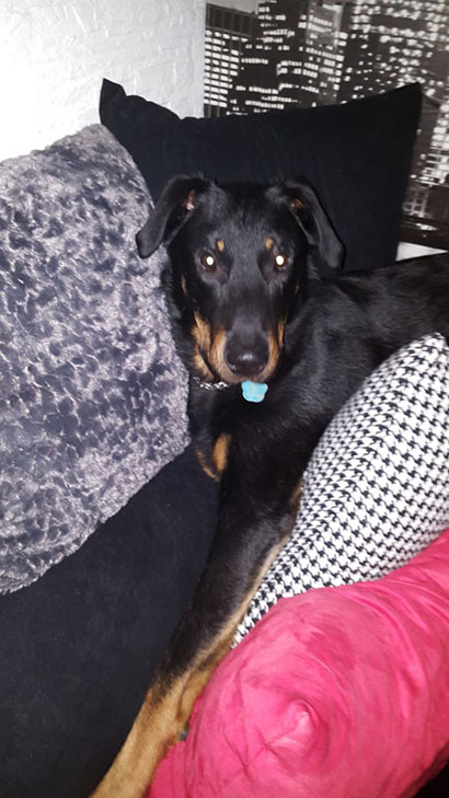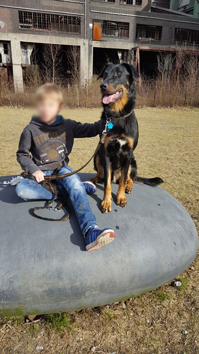 Der junge Rüde ist unkompliziert im Umgang mit den Enkelkindern, zur großen Freude seiner Besitzer.
