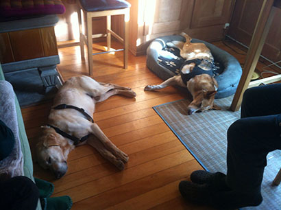 Er macht sich wirklich grossartig, lernt immer besser mit der Umwelt und den für ihn vorhandenen Hindernissen umzugehen, mein neuer grosser Erfolg: er kann im Garten (und kürzlich sogar auf dem Spaziergang) zur Ruhe kommen, dh. sich hinlegen! Es mögen kleine Fortschritte und Erfolge sein, aber für ihn sind sie Meisterleistungen. Er kann nur wenig „Kommandos“, er kann keine Tricks, aber was er immer besser kann, und was für uns wichtig ist: er kann den Alltag meistern! Körperlich gibt er leider im Moment stark ab, va sein Rücken macht ihm Probleme und ich werde wohl nicht darum herumkommen ihn wieder einmal durchzuchecken. Aber da nehmen wir halt was kommt….