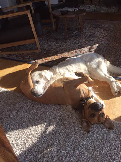 Luka ist tatsächlich ein mittelgrosser aber starker :-) Rüde und ich bin sehr, sehr froh, ist er nicht allzu gross. So lebhaft Luka ist, so aufmerksam ist er eben auch und darum sehr lernfähig und ehrlich, ich hatte noch nie so einen guterzogenen Hund wie Luka oder habe ich mich verändert in dem Bewusstsein, keinen Goldie oder Labrador zu erziehen :-)) Auf jeden Fall will Luka gefallen und weil ich beim Abhauen null Toleranz zeige, kommt er beim ersten Rufen oder Pfiff augenblicklich angerannt. Einfach ein supertoller und so lieber Hund. Dafür koche ich ihm auch viel Gemüse und er darf bei mir schlafen!!