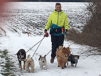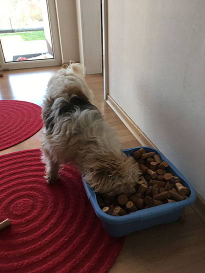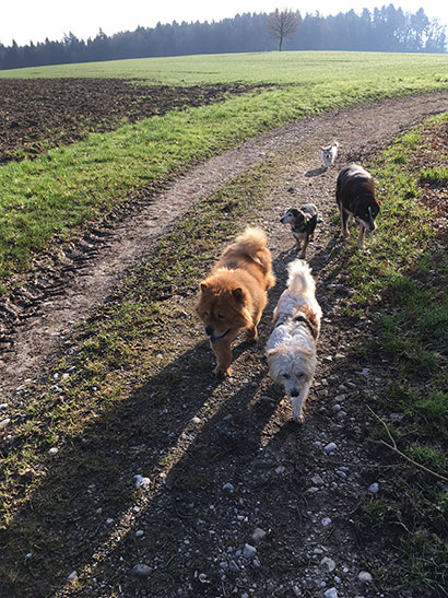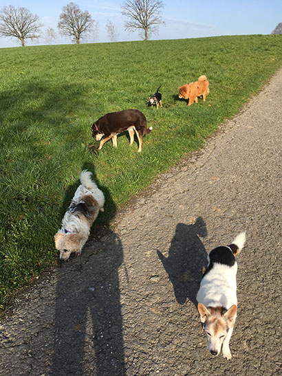 Nun lebt er ein glückliches und zufriedenes Hundeleben inmitten seiner Kumpels und geniesst Spaziergänge, Autofahrten, Ausflüge an neue Orte und auch die Hunde-schule, wo er begeistert mitmacht, sicher auch wegen der Leckerlies ;-).