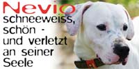Nevio, ein wunderschöner Dogo Argentino Rüde (geb. 17.10.2009), wurde aus schlechter Haltung und vor allem auch vor seinem Tod gerettet. Sein Besitzer hatte keine Zeit mehr für ihn und wollte ihn einschläfern lassen. Nevio musste seit Monaten auf dem Balkon eines Mehrfamilienhauses leben und durfte nie nach draußen.