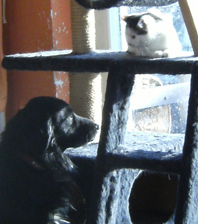 umziehen, wo er als Einzelhund mit zwei Katzen
