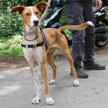 | Der hübsche Galgo Mix Rüde Aero beim Gassi ;) |