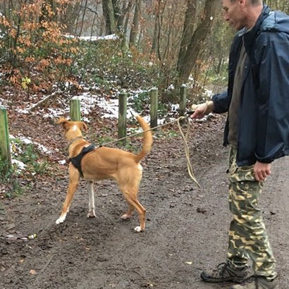 Die Leinenführigkeit muss noch etwas verbessert werden und auch den Grundgehorsam muss er noch lernen.