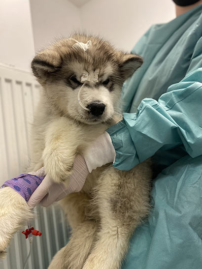 Der kleine Alaska wurde als akuter Notfall in die Tierklinik gebracht.