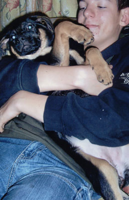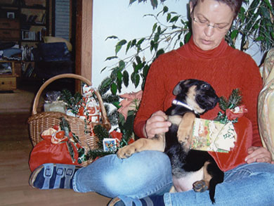 (evtl. mit Dackel?) und ca. 12 Wochen jung.