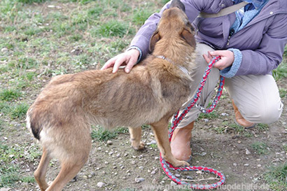 Die zierliche Malihündin Amber wurde sehr abgemagert aufgefunden.