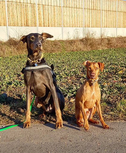 Beide sind unsichere Hunde, die eine liebevolle aber konsequente und souveräne Führung benötigen.