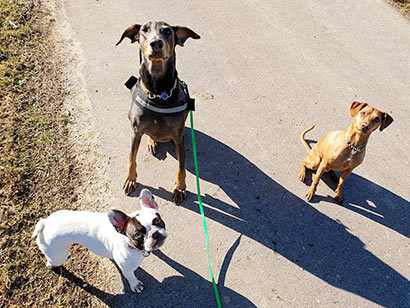 Sie leben dort auch problemlos mit zwei weiteren Hunden zusammen und gehen regelmäßig zum Hundetraining.