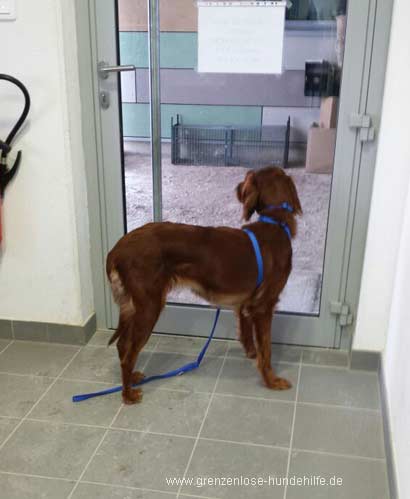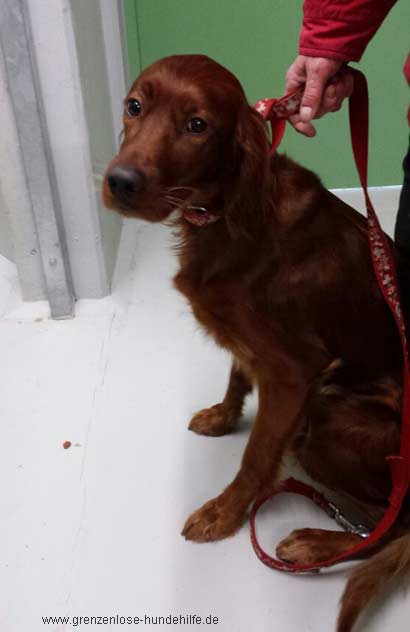 Die hübsche Irish Setterhündin Anouchka wurde im Tierheim wegen Arbeitswechsel abgegeben.
