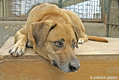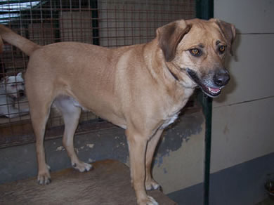 Der junge (ca. 2 Jahre alte) Labrador-Mix Rüde wurde gefunden. Er lässt sich gerne am Bauch kraulen und ist ca. 57 cm hoch.