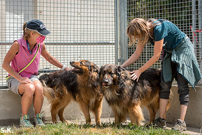 Der Spaziergang mit den beiden verläuft problemlos. Sie laufen sehr gut an der Leine, ziehen nicht, begrüssen andere Spaziergänger freundlich und auch Begegnungen mit Artgenossen verlaufen ruhig.