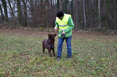 Während den Spaziergängen läuft er eigentlich gut an der Leine, aber er hat auch Kraft.