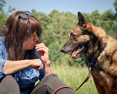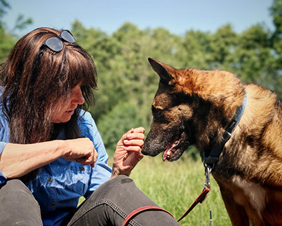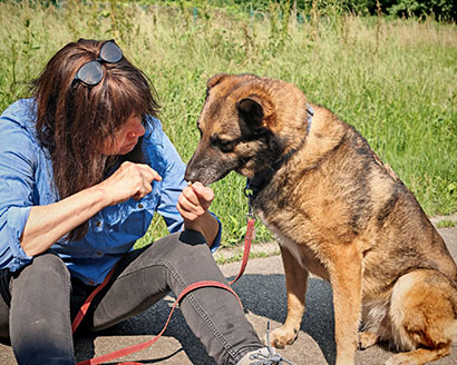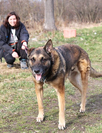 Mit Gassigängern, bei denen sie sich sicher fühlt, taut sie auf und zeigt sich als eine zutiefst liebevolle und verschmuste Hündin.