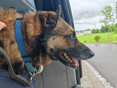 Die arme Malinois- Mixhündin Athena musste mit ihren 9 Jahren ins Tierheim, weil Ihr Besitzer in persönliche Schwierigkeiten kam.