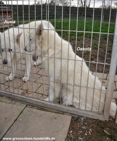 Die Hündin hängt wahnsinnig an Dakota, so dass man für sie nicht mal eine Leine benötigt um Gassi zu gehen. Wir können Auxia unmöglich von Dakota wegnehmen, sie braucht den Rüden in diesen Zeiten an ihrer Seite. Er gibt ihr Halt, den Willen und vielleicht auch die Kraft noch durchzuhalten.
