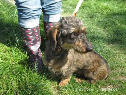 Der liebe Rauhhaardackel Rüde Baba wurde 2006 geboren. Er ist verträglich mit Rüden und Hündinnnen.