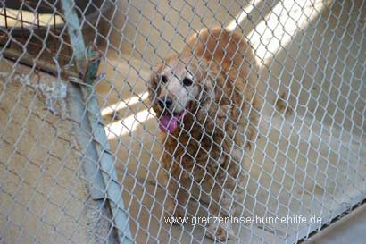 Die Cockerhündin steht sehr geschockt in Ihrem Zwinger und weiß nicht wie Ihr geschieht.... Es ist sehr traurig dieser armen Maus in die Augen schauen zu müßen...