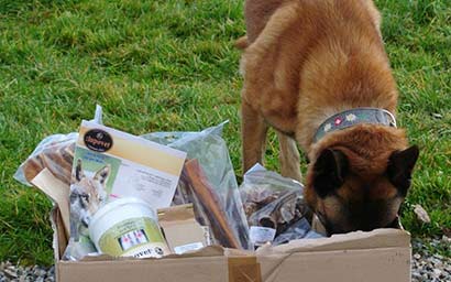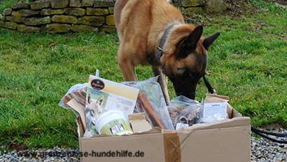 Nachdem Babs letzte Woche beim Tierarzt e n d l i c h das okay zum Platten entfernen erhielt und er nun leider wieder -ausgestattet mit seinem gehassten Trichter- nochmals ein wenig still halten muss... war seine Freude über sein tolles Weihnachtspaket natürlich riesig!