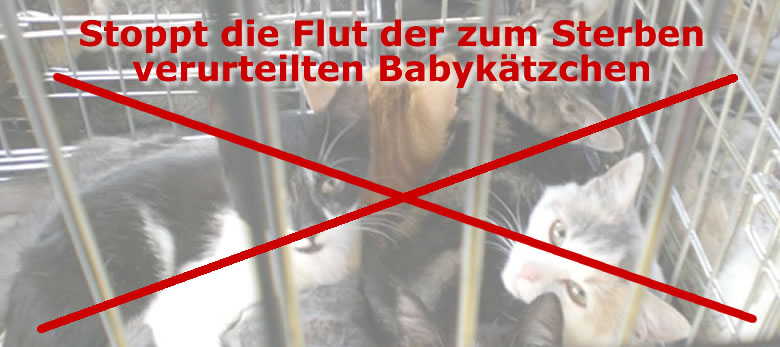 Es ist wieder so weit: Der Sommer steht vor der Tür und mit ihm "überrollt" uns die Babykatzenflut. Täglich werden neue Babykatzen ausgesetzt, mittlerweile sind schon wieder alle Pflegestellen und Tierheime überfüllt! Die Kosten (Futter, Tierarzt, Vermittlung) sind extrem hoch - uns fehlt das Geld!