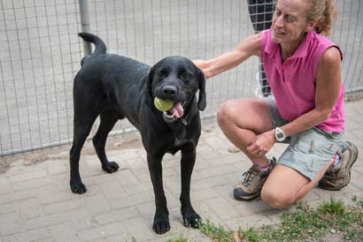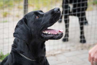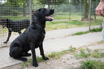 Baloo springt hoch und runter iwenn ich an seinem Zwinger vorbei laufe. 'Bitte mich, bitte mich' sagt er. Ich gehe in seinen Zwinger und zuerst springt er an mir hoch aus lauter Freude. Ein klares 'Assis (Sitz)' macht er sofort. Ich mache das Geschirr an. Als wir aus der Zwinger gehen fängt er an zu ziehen. Ei schnelles klares Kommando und schon geht er langsamer und schön an den anderen Hunden am Zwinger vorbei!!