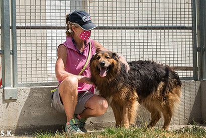 Der Spaziergang mit den beiden verläuft problemlos. Sie laufen sehr gut an der Leine, ziehen nicht, begrüssen andere Spaziergänger freundlich und auch Begegnungen mit Artgenossen verlaufen ruhig.