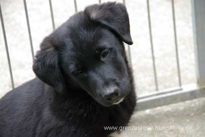 Balu ist ein Mischlingsrüde der zusammen mit seinem Bruder Sir Barclay vor der Tür des Tierheimes in einem Karton abgestellt wurde.