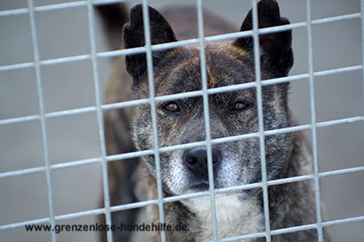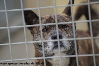Balou hat mit dem Stress, den ein Tierheimbetrieb mit sich bringt, große, große Mühe. Ganz verloren stand er im Zwinger und sah mich mit seinen wachen Augen an.