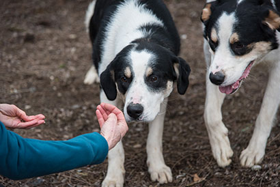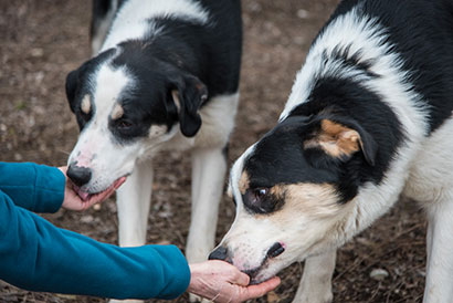 Beide zeigen jedoch keinerlei Aggressionen. Es ist nicht einfach die beiden anzuleinen, sie kennen weder Leine noch Halsband.