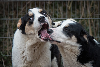 Die Brüder Bamako und Borneo sind das Resultat einer (un)glücklichen Begegnung zwischen einem Appenzeller Rüden und einer Pyrenäen-Berghündin.