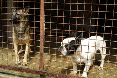 | Bandy teilt seinen Zwinger gerade mit einer