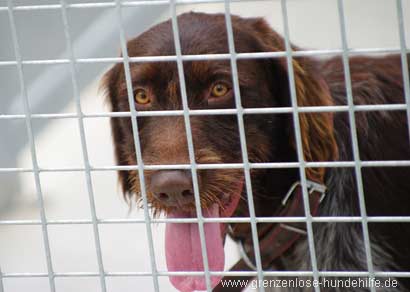 Auf dem Rückweg zum Tierheim zeigt er mir noch einmal Kostproben seiner Energie und Kraft: uns begegnet ein anderer Hund, da will er unbedingt hin, ganz verzweifelt. Und dann hört er ein paar muntere Hühner gackern.....und macht sehr deutlich, dass er so gerne sofort seiner Berufung nachgehen würde. Er beruhigt sich nach etwas Distanz und lässt sich wie erwartet problemlos in seinen Zwinger bringen und ableinen. Ein sehr lieber freundlicher Hund, der sicher noch Erziehung braucht und viel Auslastung. Obwohl mein "Beuteschema" eher die kleineren Hunde sind, hat mir die Gassirunde mit Baron mit seinem guten Charakter sehr gut gefallen. |