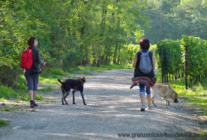 Nach einigem Abstand vom Tierheim, läuft er, wie so viele Hunde, deutlich entspannter und bemüht sich, auch wenn er voller überschäumender Energie ist, nicht so sehr zu ziehen. Und er beginnt, Blickkontakt mit mir aufzunehmen. Ich streichel ihm seinen schönen Kopf, was ihm so sehr gefällt, dass er bei Fuß läuft, als hätte er nie etwas anderes getan. Es ist ja auch sehr warm und so laufen wir beide ganz entspannt an den spätsommerlichen Feldern entlang.