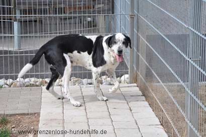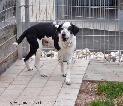 Basile ist mit Hündinnen verträglich, andere Rüden findet er nicht so toll, dafür die Menschen um so mehr. Das Personal benötigt keine Leine um Basile vom Freilauf in den Zwinger zu bringen, denn er freut sich so über menschlichen Kontakt, dass er schwanzwedelnd und ganz entspannt folgt.