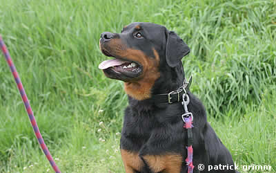 der junge Rotti.. Er ist sehr verspielt, kann schon "Sitz".