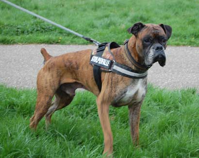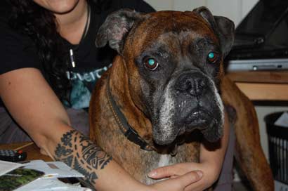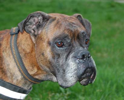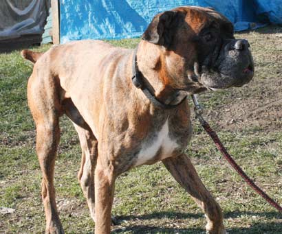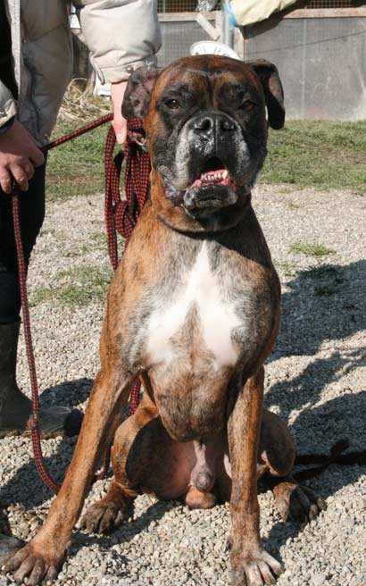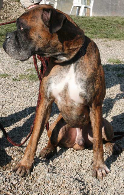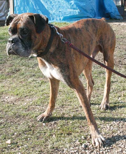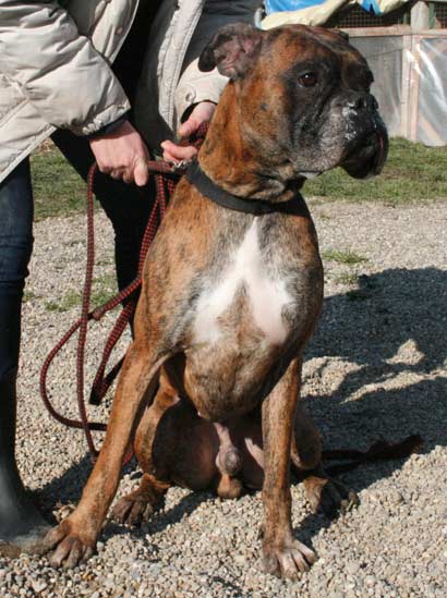Bayles, geb. 03/2006, ein lieber Boxerrüde. Bayles wurde an einem sehr kalten Wintertag im Tierheim abgegeben, weil er angeblich Sachen in der Wohnung kaputt macht wenn er alleine ist.