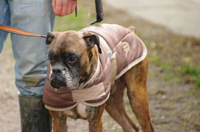Liebe Gassigänger zogen dem zitternden und verzweifelten Bayles gleich zwei Mäntelchen an, damit ihm nicht so kalt war. |