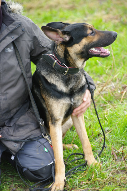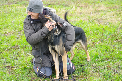 Aber, einmal draussen, an der Schleppleine, welch eine Veränderung. Du bist nicht mehr derselbe Hund. Hast dich beruhigt... Flott marschieren wir über die Felder, und die Schnuppernase war sehr aufmerksam und an allem interessiert. Du ziehst noch ein wenig, nimmst manchmal einen Anlauf.... Vorsicht Bremsen ( ist Normal, bist jung ...;voll Power...) du geniesst deinen Spaziergang... Manchmal konntest du gar nicht entscheiden, wohin zuerst... Aber du liesst dich gut von mir zurückrufen, was natürlich auch an den Leckerchen lag, für die du sofort ein Paar Sprünge riskiertest. (schlauer Kerl) Okay das gehört sich nicht, aber man kann dir nicht Böse sein, du magst die Menschen, und lässt dich gerne streicheln... Du bist sehr liebevoll und sehr anhänglich. Auf der Wiese angekommen, fingst du an, an mir emporzuspringen, was ist jetzt los dachte ich... Gott sei Dank, habe ich ein wenig Erfahrung... Schnell hollte ich einen Ball aus meiner Tasche... Ich hatte das Richtige getroffen... du wollstest einfach nur spielen. Deine Augen strahlten vor Freude, zwanzig dreissig Mal hast du den Ball gehollt und mir vor die Füsse gelegt.... müde bist du nie.... ich glaube wir würden jetzt noch spielen, wenn ich nicht Schluss gesagt hätte.. An vorbeikommenden Hunden, bist du sehr interessiert, ziehst, aber zeigst keine Aggressivität.