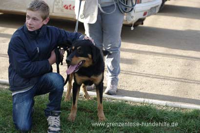Das erste Mal weil die Besitzerin ein Kind hatte und den Rüden nicht an der Leine halten konnte. Bei Ihr lebte der freundliche Rüde draussen angebunden.