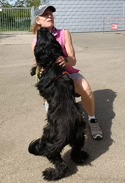 Wenn sie sich freut, springt sie im Kreis herum und schaut einen mit einem breiten Lächeln an.