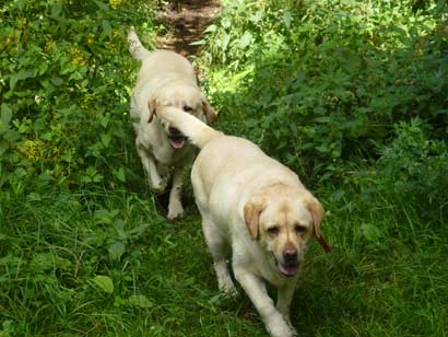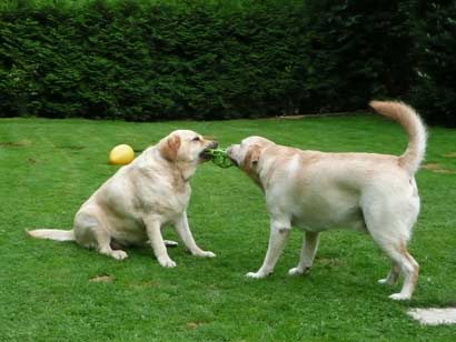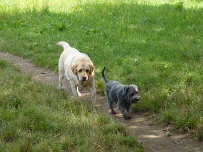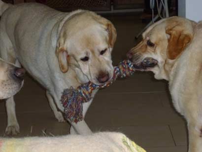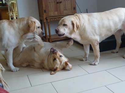 Belle mit Dougy und der Labbi-Hündin von Freunden