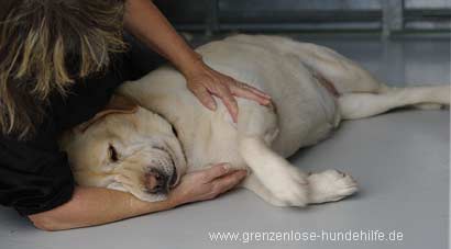 Die drei Hunde sind traurig. Besonders die beiden Labradore kommen uns unendlich traurig vor. Wie sollen Sie auch all das Unfassbare, das Ihnen nun in kurzer Zeit widerfahren ist, verstehen.