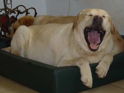 der Tag war anstrengend (Tommy gähnend,Belle dahinter)