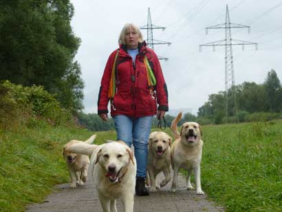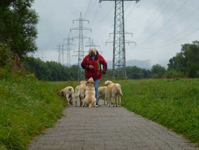 Spaziergänge sind ihre große Leidenschaft, sie geniessen jeden Meter. Durch die regelmässige Bewegung schwinden die Kilos (Futterportionen sind nicht mehr reduziert), die Kondition wird gesteigert und verlorengegangene Muskeln werden wieder aufgebaut. Das Ergebnis: 2 wesentlich munterere Hunde, die mit unserem Youngster spielen und laufen und sogar schon mal einen kurzen Spurt einlegen. Aber die Fotos sollen nun für sich sprechen."